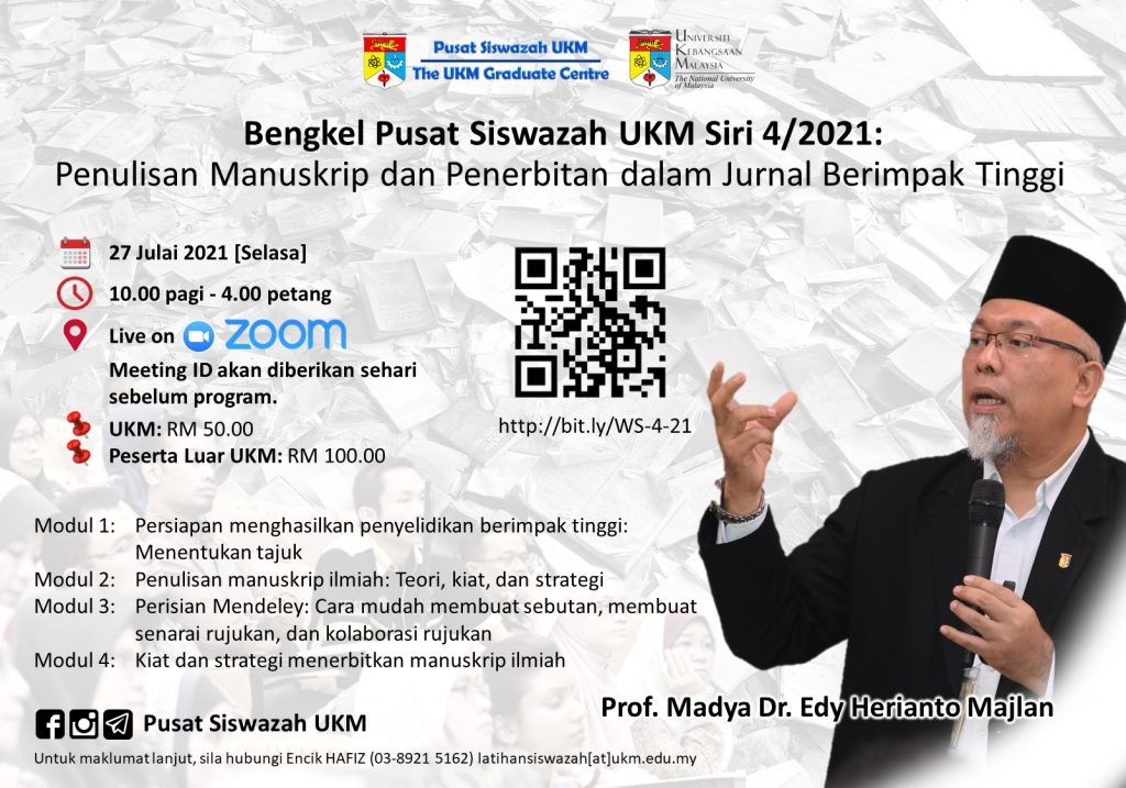 Bengkel Pusat Siswazah UKM Siri 4/2021: Penulisan Manuskrip dan Penerbitan dalam Jurnal Berimpak Tinggi
