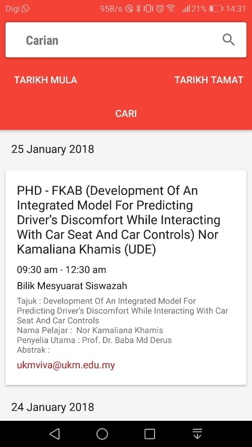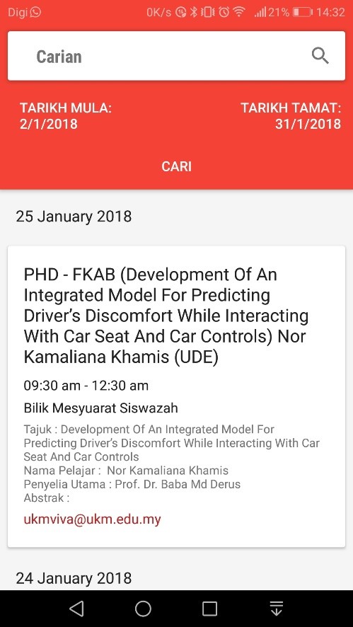 Kalendar VIVA UKM di dalam aplikasi MyUKM