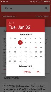 5. Klik “carian” dan pilih tarikh mula. Contoh: 2 Januari 2018 dan klik “OK”