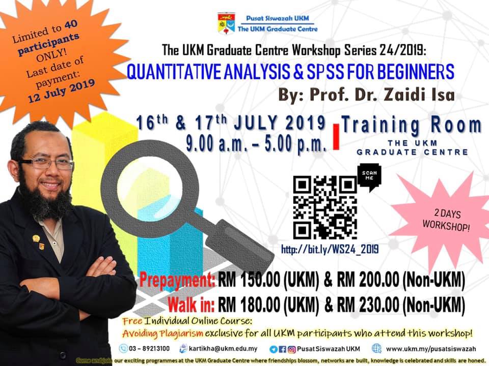 Bengkel Pusat Siswazah UKM Siri 24/2019: Quantitative Analysis & SPSS for Beginners