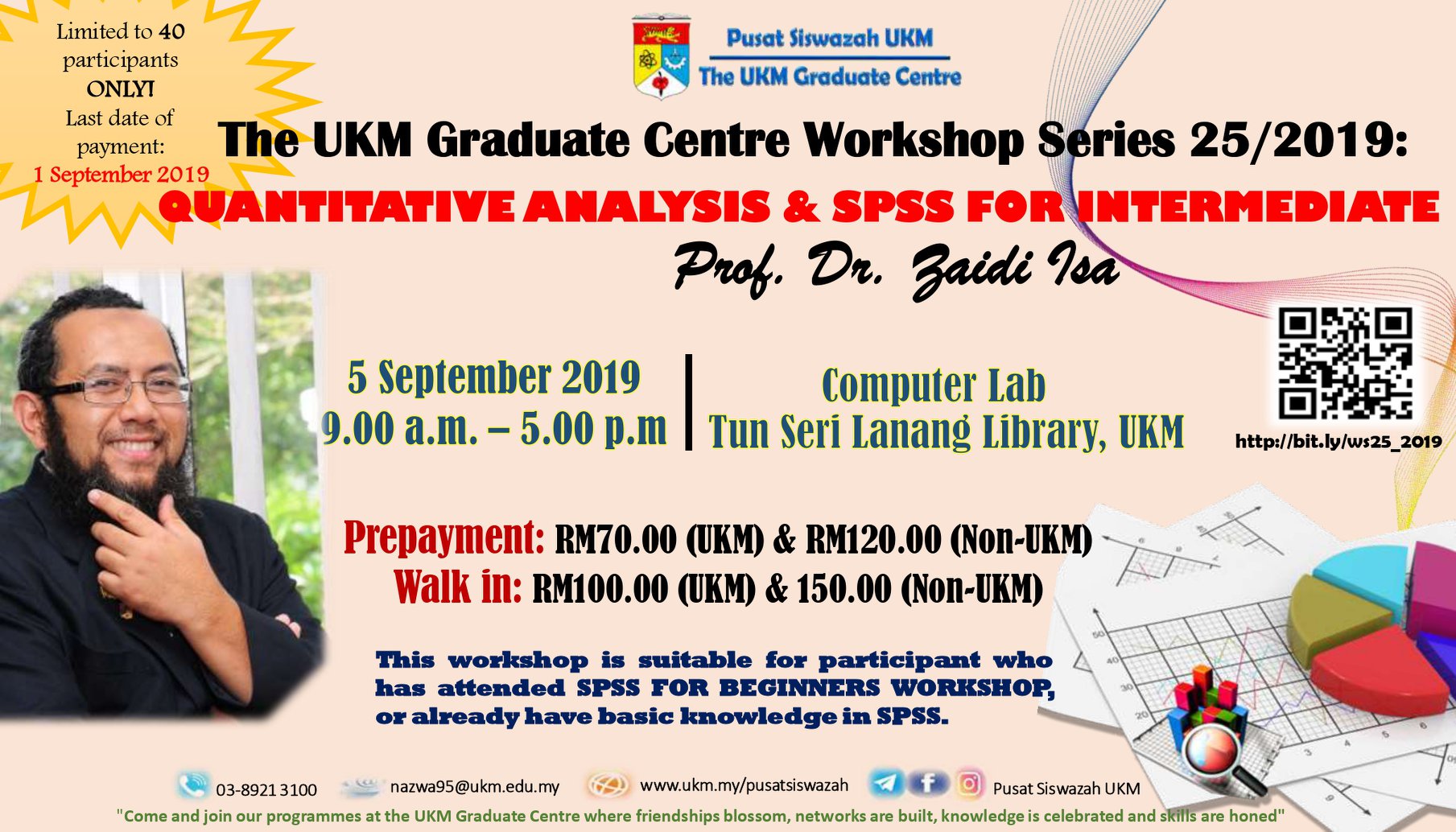 Bengkel Pusat Siswazah UKM Siri 25/2019: Quantitative Analysis and SPSS for Intermediate