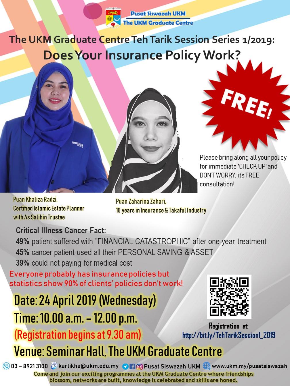 Pusat Siswazah Universiti Kebangsaan Malaysia akan menganjurkan Sesi Teh Tarik: Does Your Insurance Policy Work?. Untuk pendaftaran, sinopsis dan maklumat lanjut, sila klik http://bit.ly/TehTarikSession1_2019 ?? Butiran program…