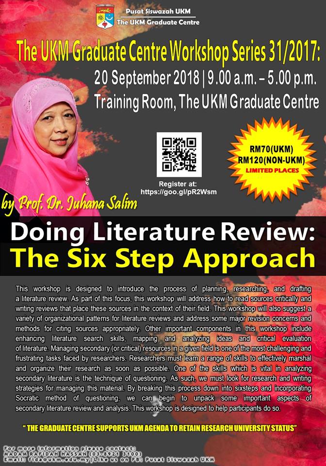 BENGKEL PUSAT SISWAZAH UKM SIRI 31/2018: DOING LITERATURE REVIEW: THE SIX STEPS APPROACH