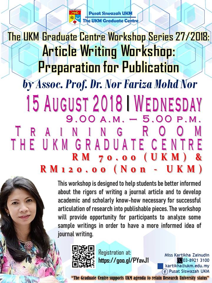 Jemputan ke Bengkel Pusat Siswazah UKM Siri 27/2018: Article Writing Workshop: Preparation for Publication.