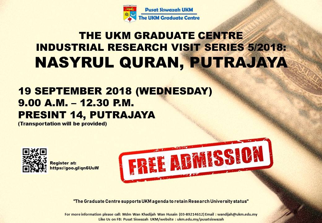 Lawatan Penyelidikan Industri Pusat Siswazah UKM Siri 5/2018: Nasyrul Quran, Putrajaya.