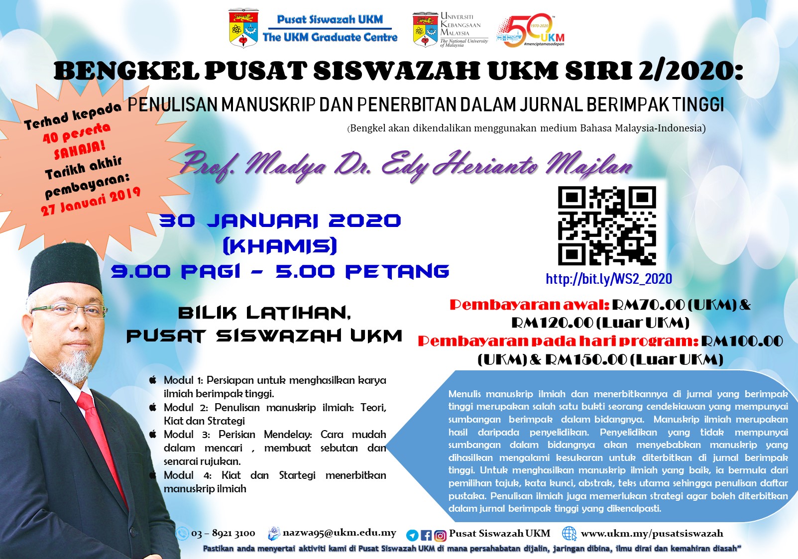 Bengkel Pusat Siswazah UKM Siri 2/2020: Penulisan Manuskrip Dan Penerbitan Dalam Jurnal Berimpak Tinggi