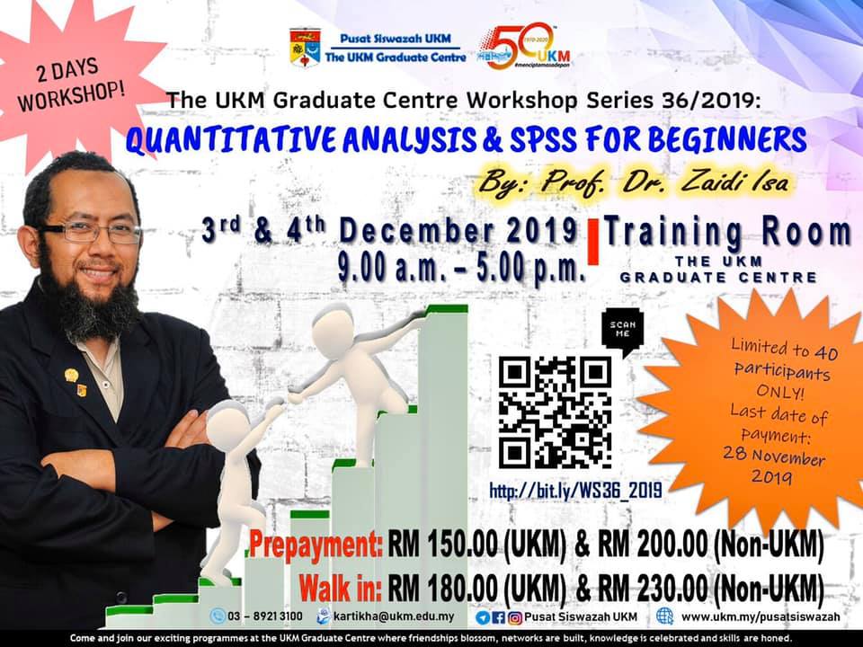 Bengkel Pusat Siswazah UKM Siri 36/2019: Quantitative Analysis & SPSS for Beginners