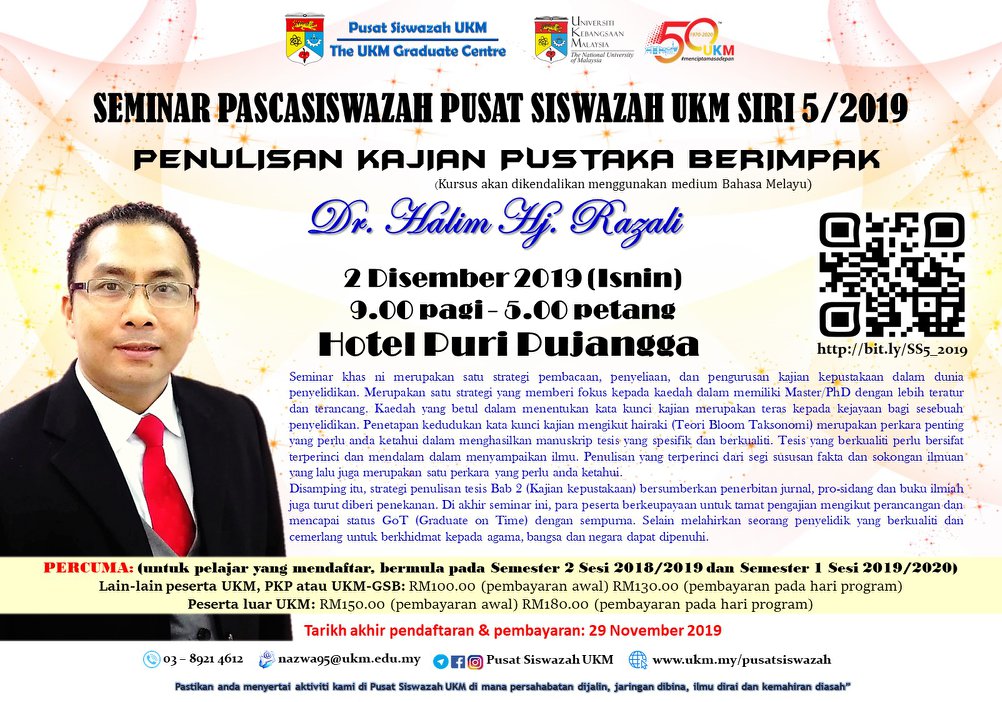 Seminar Pascasiswazah Pusat Siswazah UKM Siri 5/2019: Penulisan Kajian Pustaka Berimpak