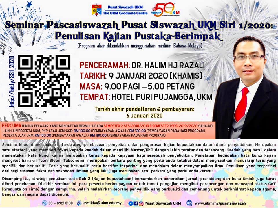 Seminar Pascasiswazah Pusat Siswazah UKM Siri 1/2020: Penulisan Kajian Pustaka Berimpak
