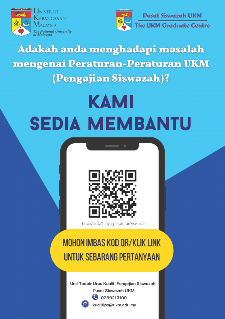 Anda meghadapai masalah pengenai peraturan UKM (Pengajian Siswazah)?