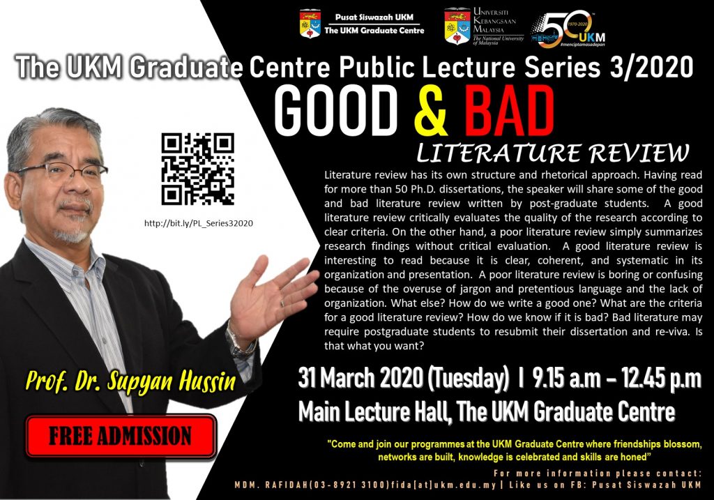 Syarahan Umum Pusat Siswazah UKM Siri 3/2020: Good & Bad Literature Review