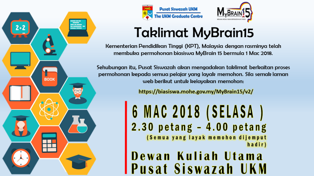 Permohonan MyBrain15 kini telah dibuka semula bermula 1 Mac – 31 Mac 2018.