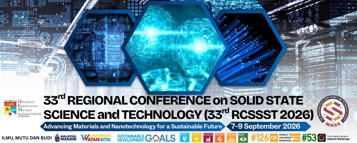 RCSSST2026 aligns with national priorities set by the Ministry of Science, Technology and Innovation (MOSTI) and the MADANI Framework by promoting research in nanotechnology, advanced materials, semiconductors, energy technologies and solid-state devices. The conference also contributes to key Sustainable Development Goals, including Quality Education (SDG 4), Affordable and Clean Energy (SDG 7), Industry, Innovation and Infrastructure (SDG 9) and Climate Action (SDG 13).