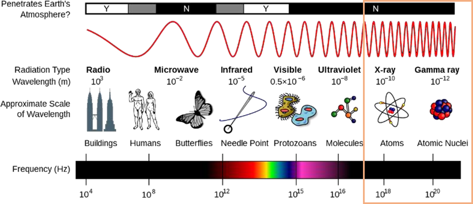 Sinaran gama dan sinar-x merupakan sejenis gelombang elektromagnet dan mempunyai cas. Sinaran gama mempunyai kuasa pengionan yang paling rendah tetapi mempunyai kuasa penembusan yang paling tinggi. Sinaran gama dan sinar-x boleh disekat dengan bahan yang mempunyai ketumpatan yang tinggi seperti konkrit dan plumbum.