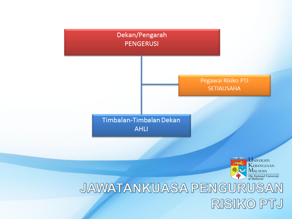 - Jawatankuasa Pengurusan Risiko di peringkat PTj dibentuk sendiri oleh PTj yang terlibat dengan merujuk kepada keperluan bagi memantau pengurusan risiko di PTj.