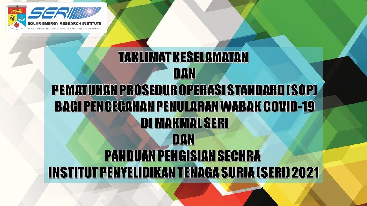 Institut Penyelidikan Tenaga Suria (SERI) telah menganjurkan TAKLIMAT KESELAMATAN DAN PEMATUHAN PROSEDUR OPERASI STANDARD (SOP) BAGI PENCEGAHAN PENULARAN WABAK COVID-19 DI MAKMAL SERI DAN PANDUAN …