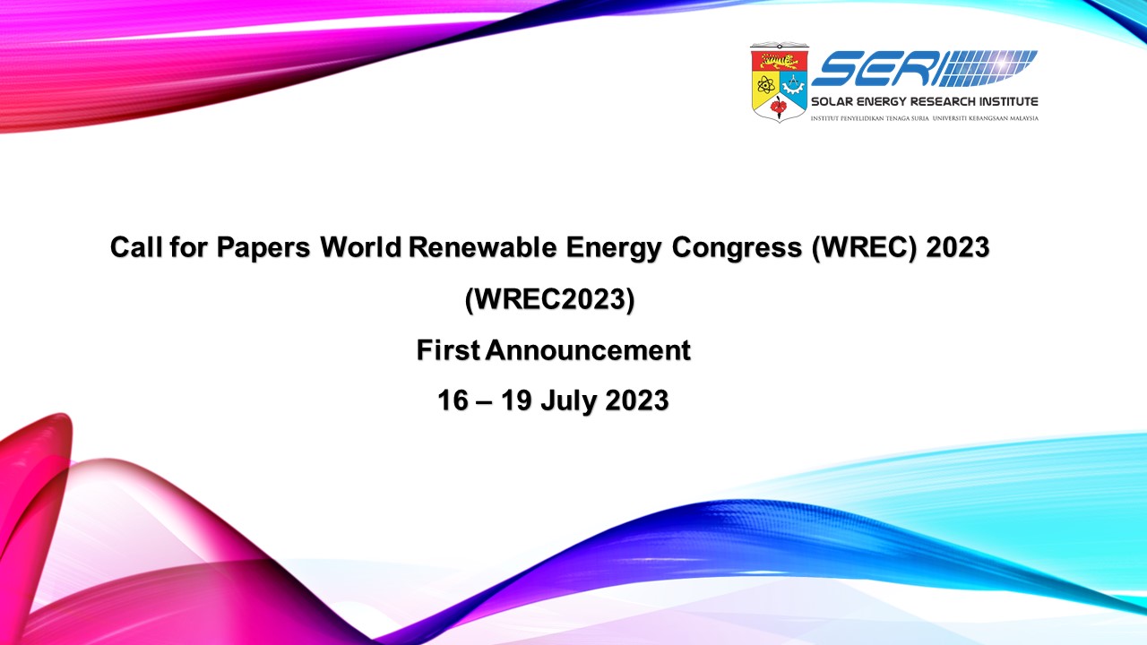 Call for Papers World Renewable Energy Congress (WREC) 2023 (WREC2023) – First Announcement 16 – 19 July 2023 Kuala Lumpur Convention Center Organized by Solar …