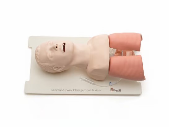 Realistic practice is the key to developing proficiency in airway management skills. The Laerdal Airway Management Trainer realistically simulates an adult airway, and the lifelike upper torso and head can be used to demonstrate and practice intubation, ventilation, and suction techniques. In addition, it can be used to demonstrate upper airway bronchoscopy and bronchoscopy guided endotracheal intubation.