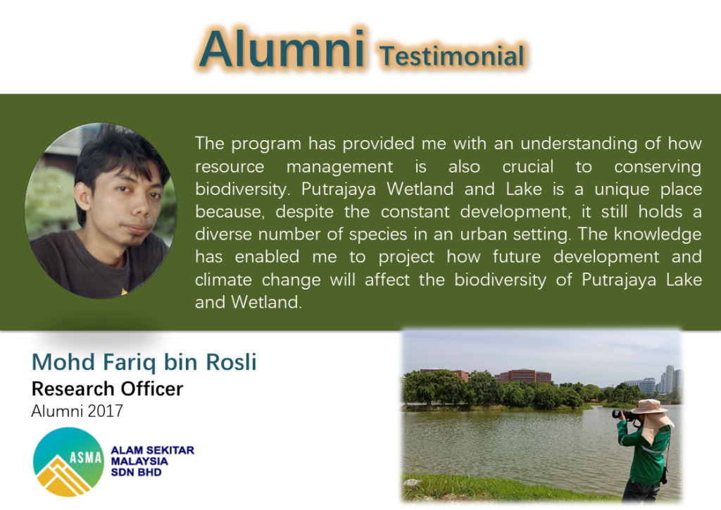 Conservation and management of biological diversity is a multidisciplinary field of science that encompasses the philosophies of morality, social justice, economics, politics and sustainable development, in addition to biodiversity and natural habitat protection. Both aspects of conservation and management of biodiversity are important to consider when using natural resources to ensure sustainable development. The multidisciplinary approach is applied through lectures and discussions on the history of conservation biology, international agreements, such as the Convention on Biological Diversity, and national attempts to safeguard biodiversity through various acts, strategies and policies. In-depth discussion is given to the issues and problems facing biodiversity, particularly the impact of climate change, habitat loss, and the introduction of invasive alien species. Among the topics on conservation include the establishment of protected areas; rehabilitation of species, populations, habitats and ecosystems; integrated conservation and development project (ICDP); conservation status guide in the IUCN Red List database; and the Sustainable Development Goals (SDGs). Fieldwork involves assessment of anthropogenic impacts such as the impact of tourism on the conservation and management of biodiversity at UNESCO/RAMSAR sites in Peninsular Malaysia. The use of latest technologies in conservation and management of biodiversity, especially those related to IR4.0, such as drone technology, IoT and nanotechnology will be discussed.