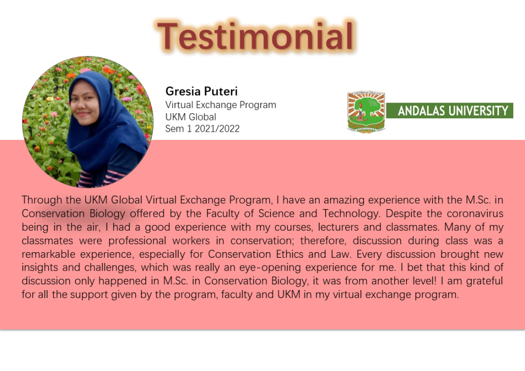 This course will discuss the science of curation which includes theory, practice and understanding of the role of natural history collections in biological conservation. The course also emphasizes the importance of natural history collections as a reference for education and research. Students will be trained on methods of sampling, preparation, identification and curation of animal and plant specimens at the flora and fauna repository facilities at UKM, namely the Insect Systematics Centre, Herbarium Universiti Kebangsaan Malaysia Bangi and the Natural History Museum Faculty of Science and Technology. Students will digitise specimens for data management in line with the latest curation method as part of the course assessment. Students will also have the opportunity to visit one of the national specimen repositories.