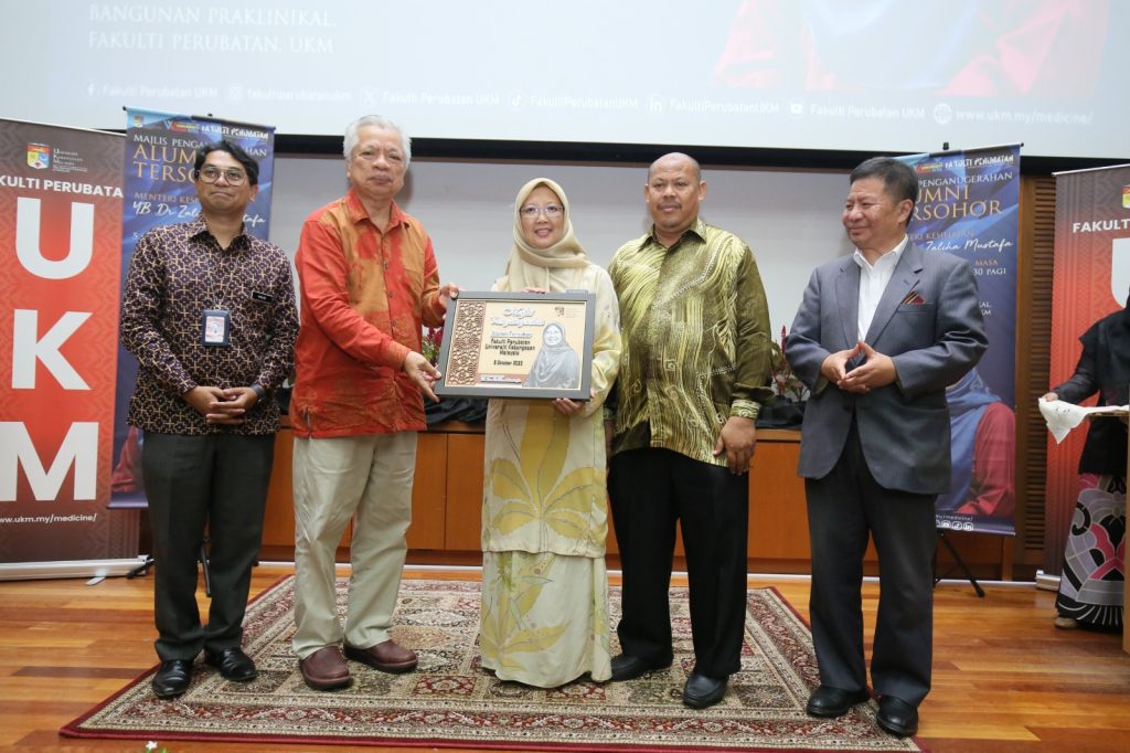CHERAS, 5 OKTOBER 2023- Fakulti Perubatan UKM menganugerahkan gelaran Almuni Tersohor kepada Dr. Zaliha Mustafa, Menteri Kesihatan Malaysia, dalam Majlis Penganugerahan Alumni Tersohor yang diadakan baru-baru ini.