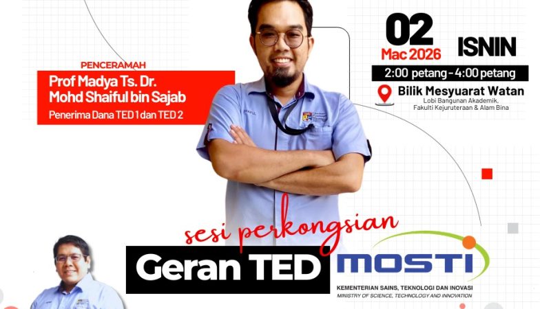 On March 2, 2026, the Secretariat of Research & Innovation (P&I) hosted an insightful sharing session titled “Sesi Perkongsian Geran TED MOSTI” at the Watan …