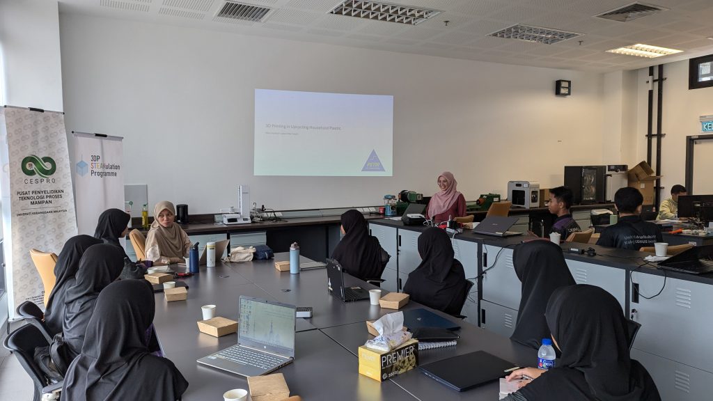 On November 22, 2024, Research Center for Sustainable Process Technology (CESPRO), Faculty of Engineering & Built Environment, UKM proudly hosted students and teachers, Dr. Hatika Kaco from Kolej Permata Insan, Universiti Sains Islam Malaysia, for an engaging and educational event: the 3DP STEAMulation Programme. This initiative aimed to ignite students’ interest in STEM fields through hands-on activities and sustainable engineering solutions.