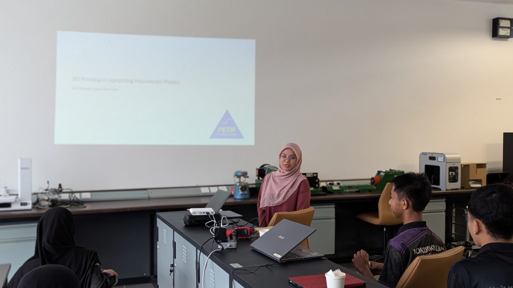 PETIR Module: Transforming Waste into Innovation Led by Assoc. Prof. Ts. Dr. Mohd Shaiful Sajab, the event featured the PETIR (PET in-house Recycling) module. Students were introduced to the concept of the circular economy by transforming collected PET plastic waste into 3D printing material for new products. This innovative approach not only highlighted the importance of recycling but also demonstrated the practical applications of engineering technology in creating sustainable solutions.