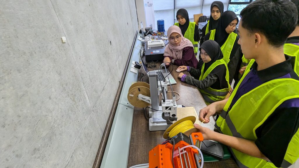 Hands-On 3D Printing Experience The highlight of the day was the hands-on 3D printing session conducted by Mrs. Siti Aisyah Syazwani. She guided the students through the process of preparing digital designs and using 3D printing technology to bring their creations to life. This practical experience allowed students to see the direct impact of their efforts and the possibilities of engineering in solving real-world problems.