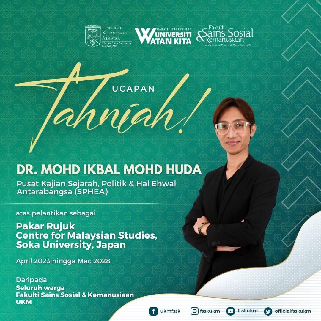 Tahniah Dr. Mohd Ikbal Mohd Huda Ucapan Tahniah Dr. Mohd Ikbal Mohd Huda atas Pelantikan Sebagai Pakar Rujuk Centre for Malaysian Studies, Soka University Japan
