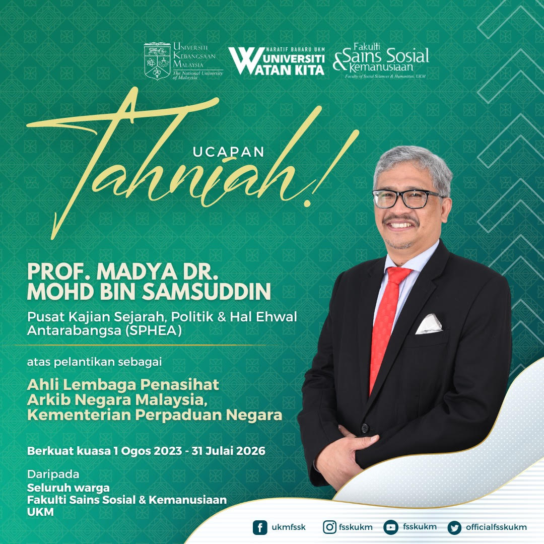Tahniah Prof. Madya Dr. Mohd Bin Samsudin Ucapan Tahniah Prof. Madya Dr. Mohd Bin Samsudin atas perlantikan sebagai Ahli Lembaga Penasihat Arkib Negara Malaysia, Kementerian Perpaduan Negara.