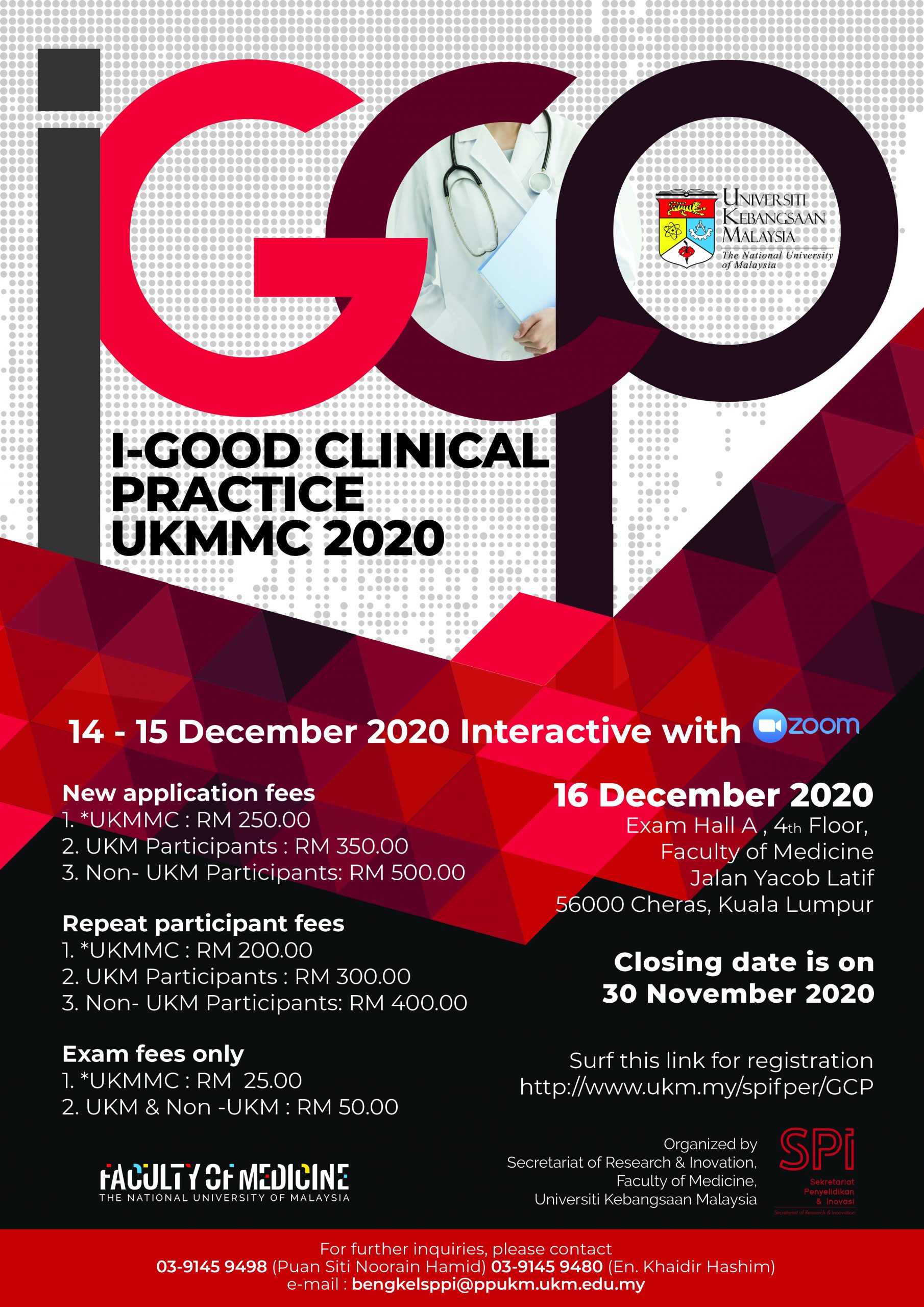 December 14, 2020 @ 8:00 am - December 16, 2020 @ 5:00 pm i Good Clinical Practice 2020 Dewan Peperiksaan Tingkat 4 Blok Pendidikan, Fakulti Perubatan UKM, Cheras, Kuala Lumpur, Malaysia