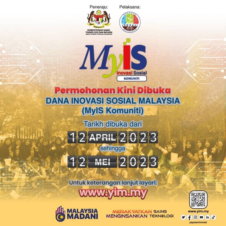 Yayasan Inovasi Malaysia (YIM) opens the Dana MyIS Komuniti Tahun 2023. The closing date for applications is 12 May 2023 (Friday) via https://www.myiskomuniti.innomap.my. If this application needs to be confirmed by the Director of CRIM or the Vice Chancellor, please submit it to CRIM no later than (3) days before the closing date for the application to obtain a signature.
