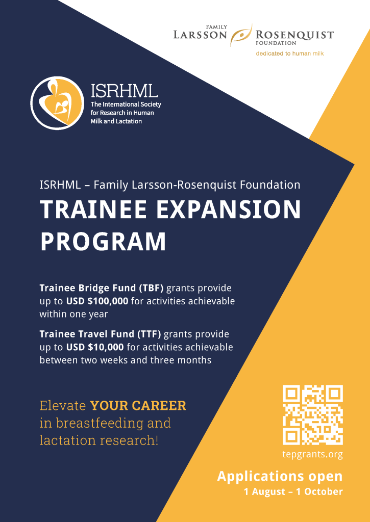Invitation for young researchers to apply for the Trainee Expansion Program (TEP) that provides grants up to USD 100,000 for breastfeeding research.
