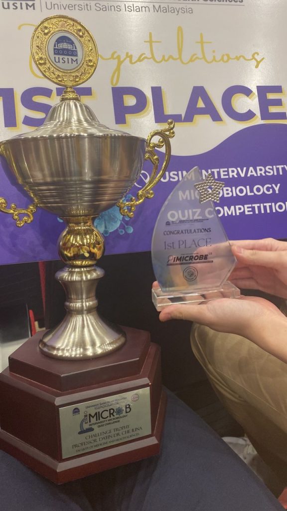 Congratulations to students in achievement to win 1st place for the Microbiology Intervarsity USIM (iMICROBE) on 11th March 2023. In addition, one of the group members has win the best presenter. The other team also made it to top 8 out of 30 teams involving 15 universities.