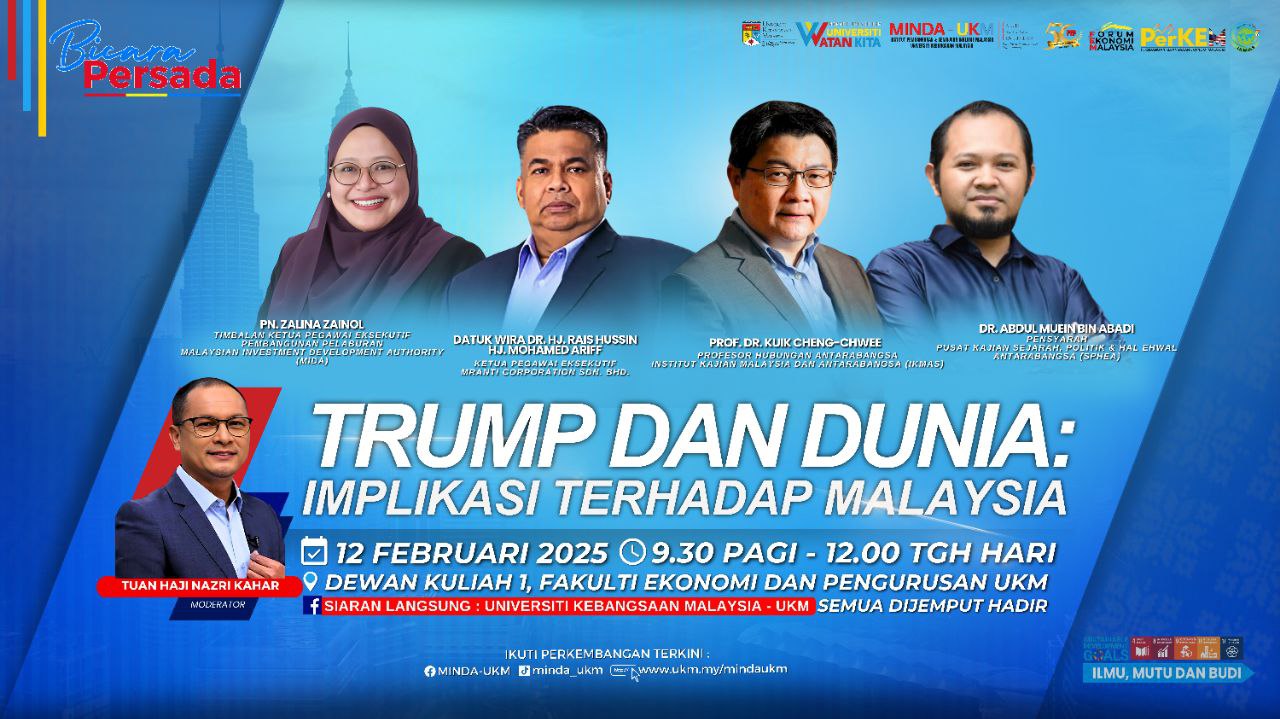 Jom bersama kami membincang dan menganalisis perkara ini dalam Bicara Persada yang dianjurkan oleh MINDA UKM dengan kerjasama Institute of Malaysian & International Studies – IKMAS UKM dan Fakulti Ekonomi dan Pengurusan, UKM pada 12 Februari 2025 (Rabu) jam 9.30 pagi di Dewan Kuliah 1, Aras 1, Fakulti Ekonomi dan Pengurusan, UKM, Bangi. Turut bersiaran langsung di laman Facebook rasmi Universiti Kebangsaan Malaysia – UKM.