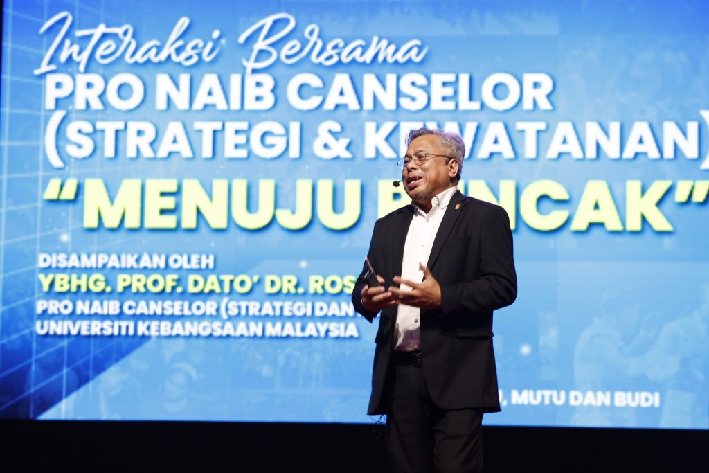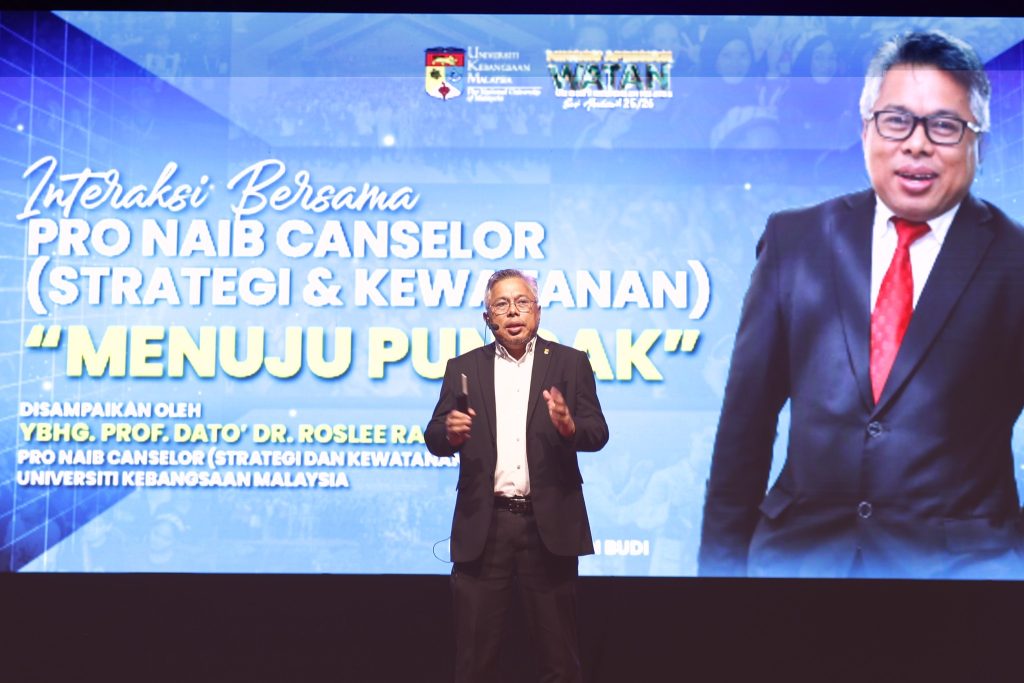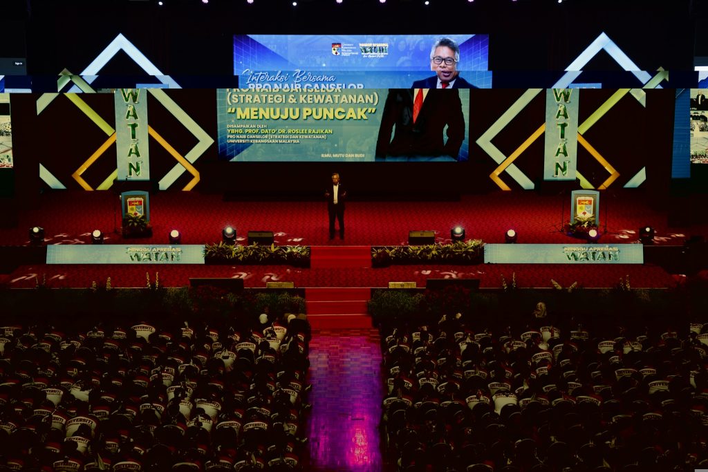 Pelajar-pelajar baharu UKM memenuhi Dewan Tun Abdul Razak (DECTAR ), Universiti Kebangsaan Malaysia (UKM) bagi menghadiri sesi Interaksi bersama Pro Naib Canselor (Strategi dan Kewatanan): Menuju Puncak sempena Minggu Apresiasi Watan (MAW) Sesi Akademik 2025/2026.