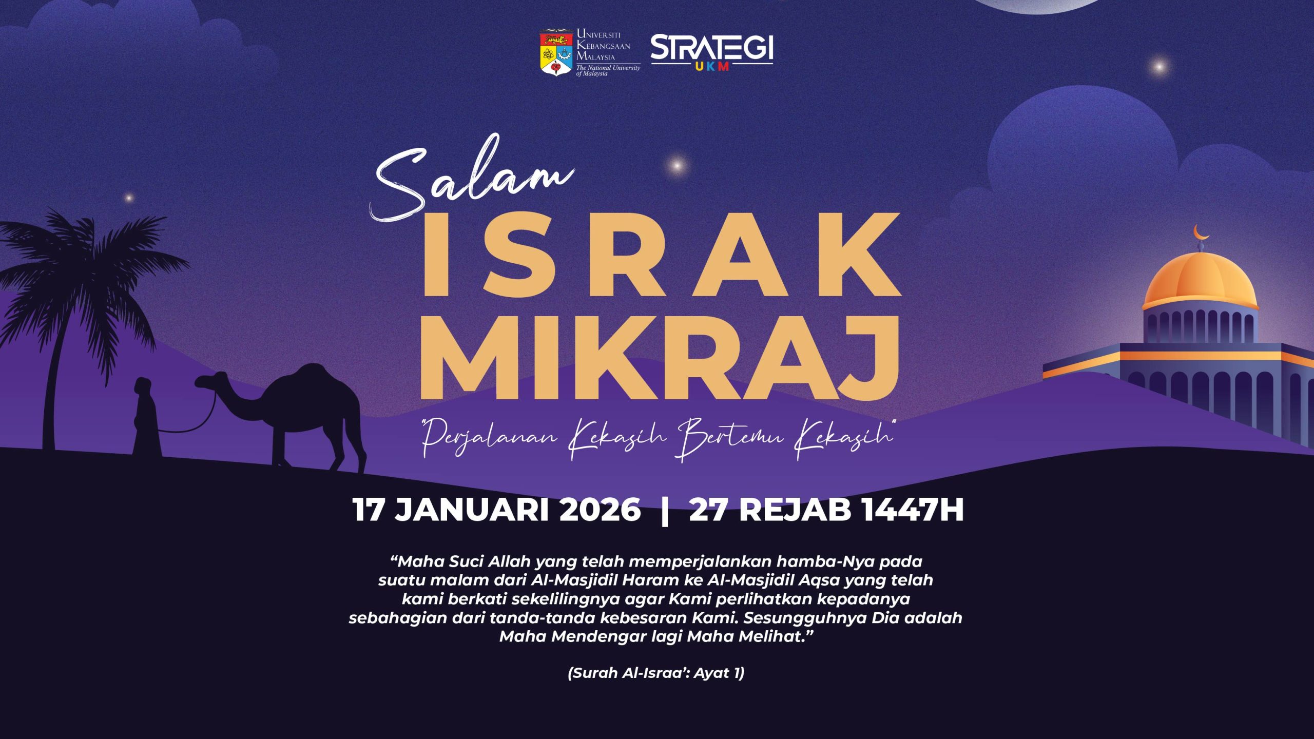 Berita Salam Israk Mikraj 16 January 202616 January 2026 Selamat Memperingati Peristiwa Israk Mikraj 2026 Semoga kita terus mengambil iktibar daripada perjalanan agung ini untuk memperkukuh iman, memperbanyakkan amal, dan meningkatkan ketaqwaan kepada Allah SWT.