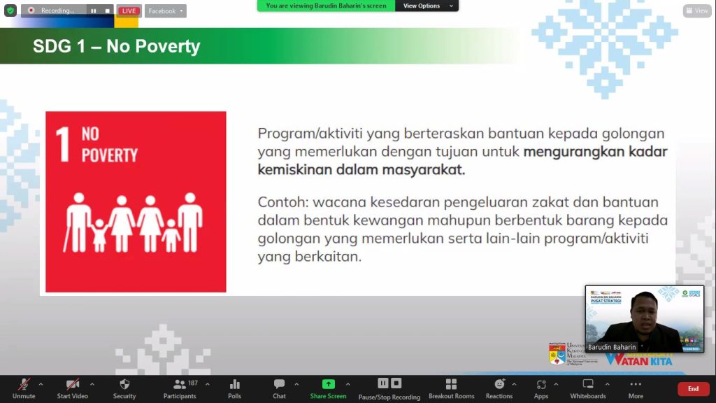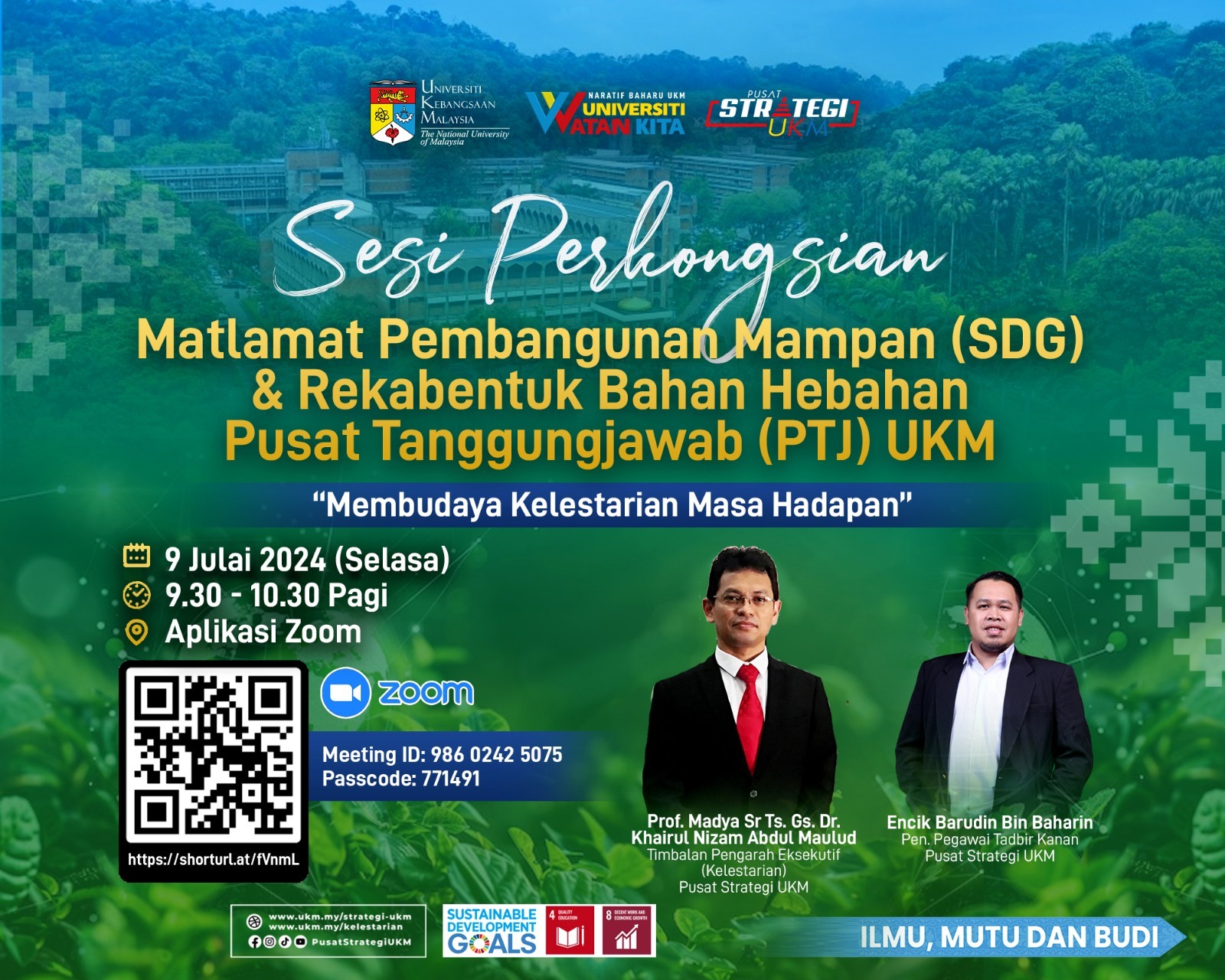 Sesi Perkongsian Matlamat Pembangunan Mampan (SDG) & Reka Bentuk Bahan Hebahan PTj UKM oleh Prof. Madya Sr Ts. Gs. Dr. Khairul Nizam Abdul Maulud dan Encik Barudin Baharin.