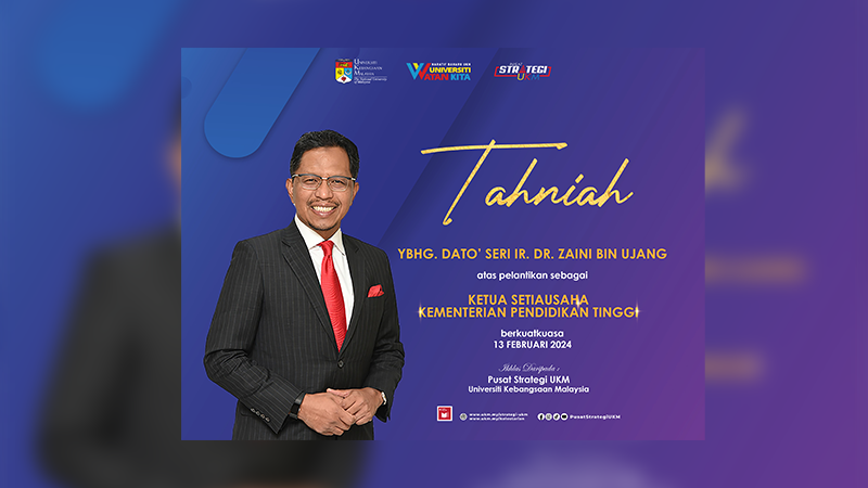 Tahniah diucapkan kepada Ybhg. Dato’ Seri Ir. Dr. Zaini Bin Ujang atas pelantikan sebagai Ketua Setiausaha Kementerian Pendidikan Tinggi.