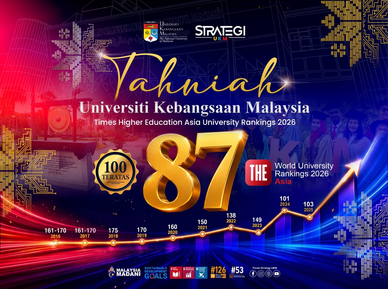 Universiti Kebangsaan Malaysia (UKM) terus melakar pencapaian membanggakan apabila tersenarai dalam kelompok 100 universiti terbaik Asia menerusi penarafan terkini Times Higher Education (THE) Asia University Rankings 2026 yang diumumkan pada 23 April 2026, dengan UKM berada pada kedudukan ke-87 terbaik di Asia.