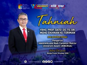 Tahniah YBhg. Prof. Dato’ Gs. Ts. Dr. Mohd Ekhwan Hj Toriman, Naib Canselor UKM