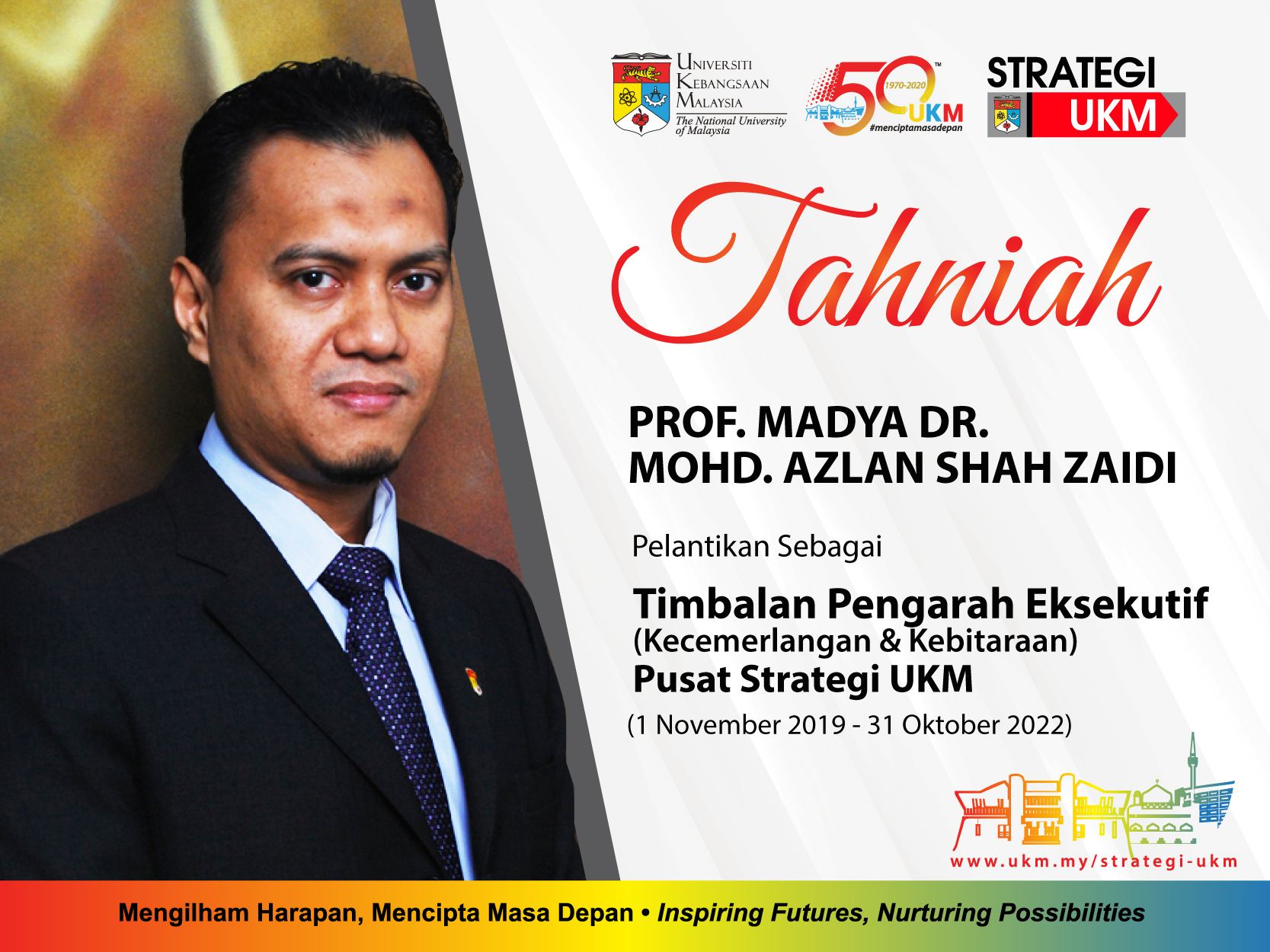 Tahniah Prof. Madya Dr. Mohd. Azlan Shah Zaidi di atas pelantikan sebagai Timbalan Pengarah Eksekutif (Kecemerlangan dan Kebitaraan) baharu Pusat Strategi Universiti Kebangsaan Malaysia – UKM
