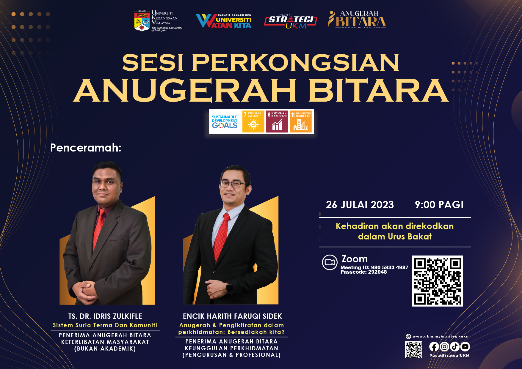 Penyertaan dalam sesi perkongsian ini juga akan didaftarkan dalam sistem UrusBakat UKM.
