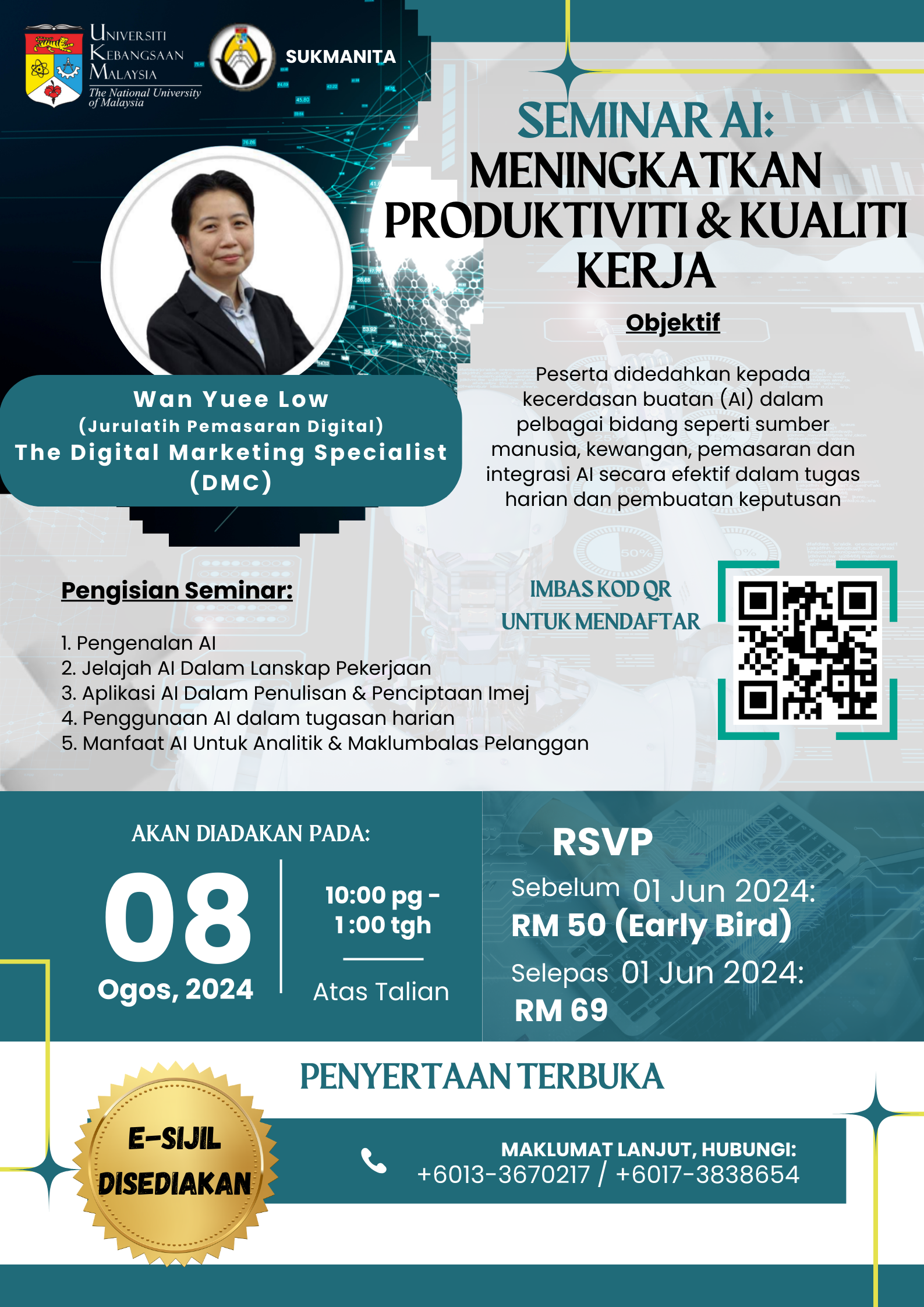 URL Pendaftaran : Borang Seminar Penggunaan AI dalam Meningkatkan Produktiviti dan Kualiti