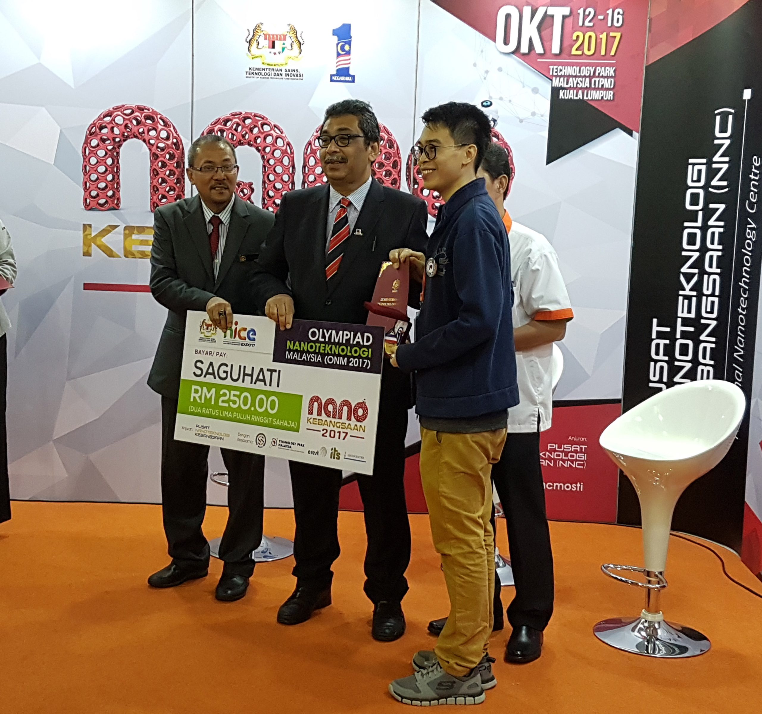 Ho Kah Chun, a PhD candidate from Faculty of Engineering & Built Environment (FKAB), UKM who is a Yayasan Sime Darby scholarship recipient participated in the competition and shortlisted for the ONM nano camp 2017. Ho Kah Chun is currently supervised by Dr Teow Yeit Haan and Prof. Dato Ir. Dr Abdul Wahab Mohammad, the Dean of FKAB, UKM. He has successfully won a gold medal during the competition and grabbed a ticket to the 1st INO international competition, Tehran, Iran together with other Malaysia representatives to pitch their creative ideas on nanotechnology for its innovative applications to solve real scientific and industrial problems.