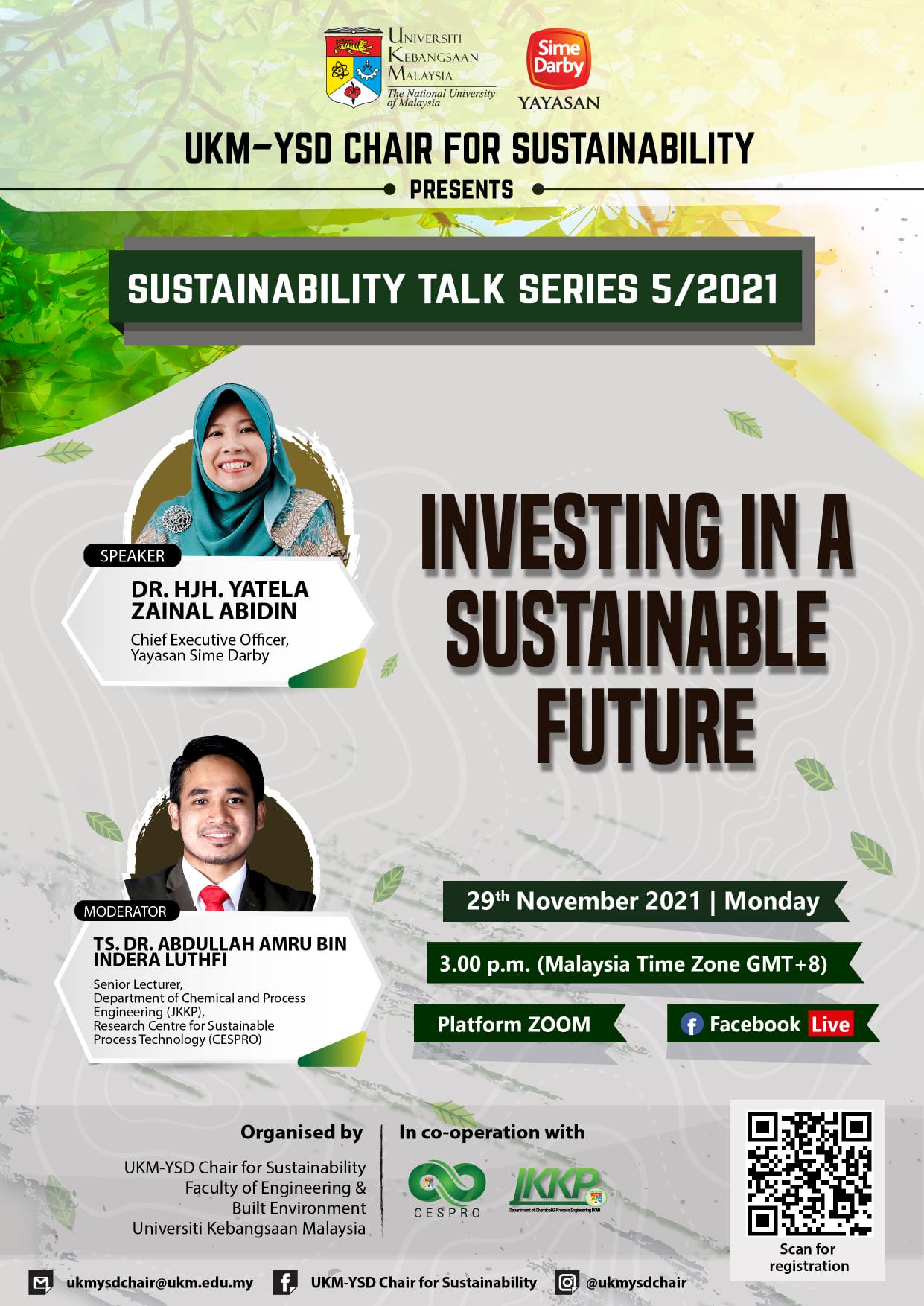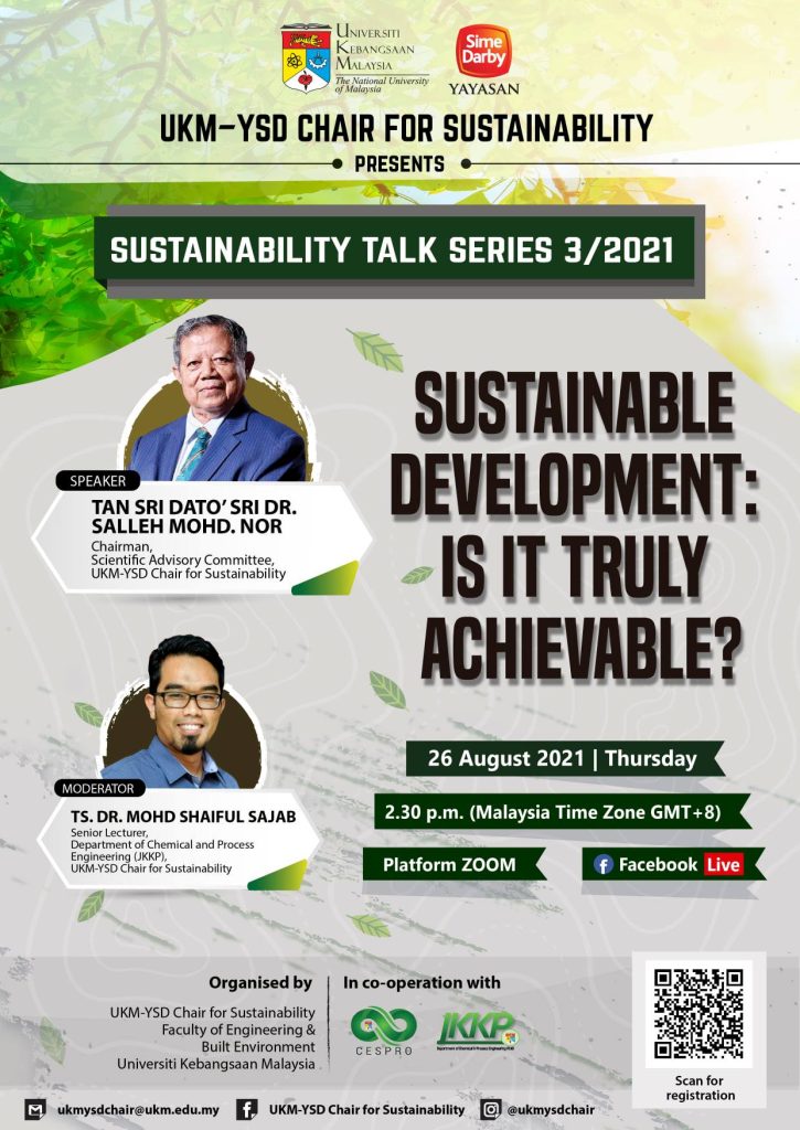 UKM-YSD CHAIR FOR SUSTAINABILITYSUSTAINABILITY TALK SERIES 2021SUSTAINABILITY TALK SERIES 1/2021Date: 28th June 2021MORE DETAILSSUSTAINABILITY TALK SERIES 2/2021Date: 28th June 2021MORE DETAILSSUSTAINABILITY TALK SERIES 3/2021Date: 26th August 2021MORE DETAILSSUSTAINABILITY TALK SERIES 4/2021Date: 30th September 2021MORE DETAILSSUSTAINABILITY TALK SERIES 5/2021Date: 29th November 2021MORE DETAILS