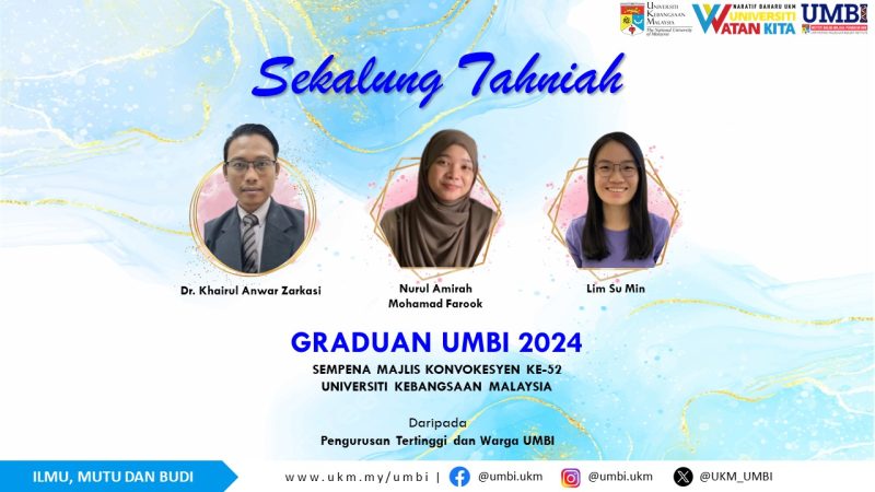 Tahniah kepada Graduan UMBI 2024!1. Dr. Khairul Anwar Zarkasi (Ijazah Doktor Falsafah)2. Nurul Amirah Mohamad Farook (Ijazah Sarjana Sains)3. Lim Su Min (Ijazah Sarjana …