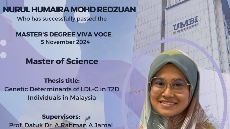 Tahniah buat Nurul Humaira Mohd Redzuan, Pelajar Sarjana Sains di Institut Biologi Molekul Perubatan UKM (UMBI) yang telah lulus Peperiksaan Lisan Tesis Ijazah Sarjana Sains …