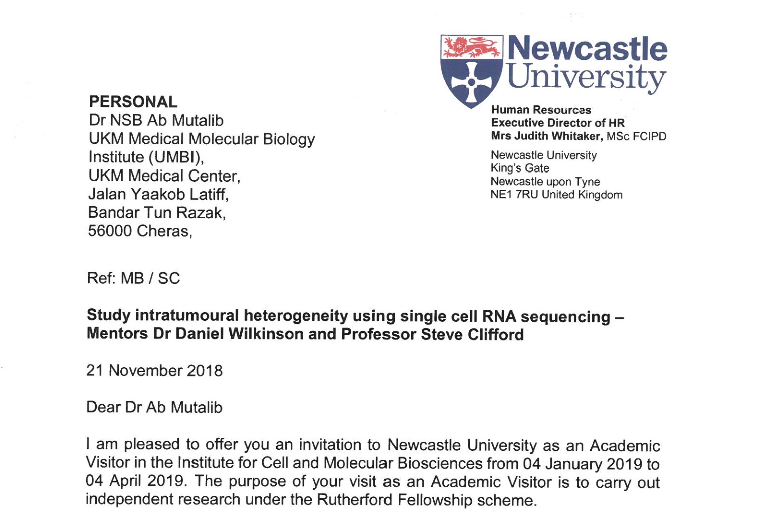 DR. NURUL SYAKIMA AWARDED THE RUTHERFORD STRATEGIC LINK SHORT TERM GRANT FELLOWSHIP
